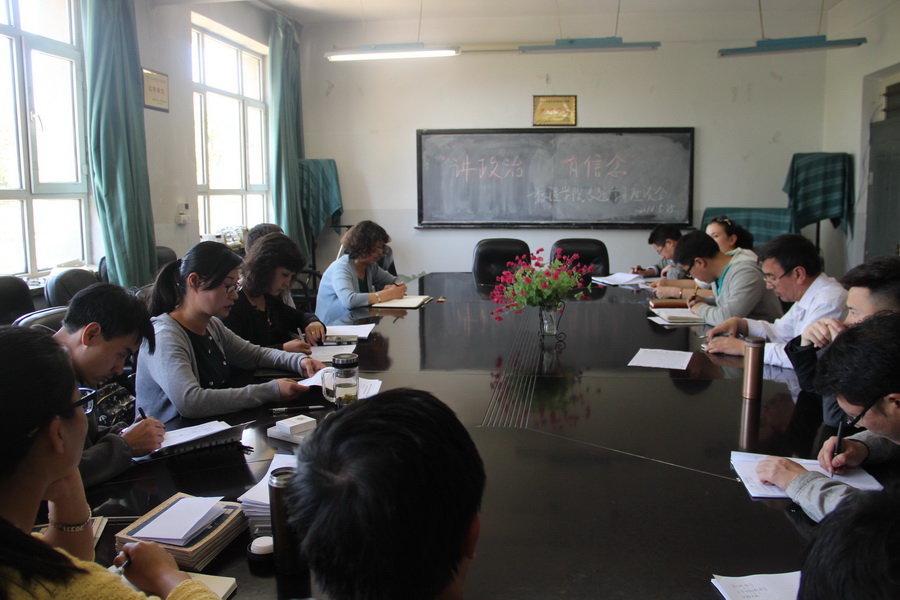 为深入贯彻学习习近平总书记系列重要讲话精神,按照学校《关于在全校党员中开展“两学一做”学习教育的实施方案》的要求,逼喱逼喱 教工党支部于525日在逼喱逼喱 会议室开展了“四讲、四有”之“讲政治、有信念”专题座谈会。