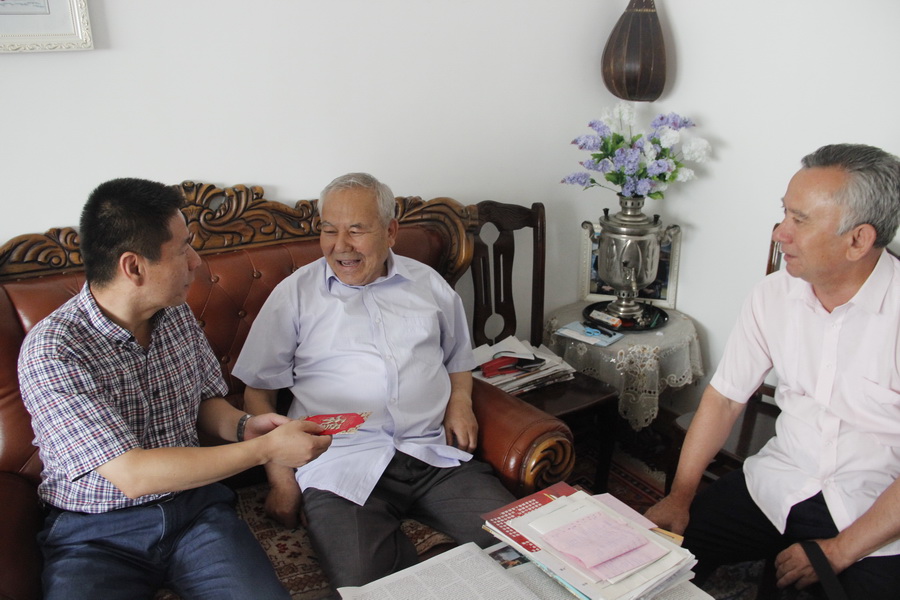 6月28日上午,学院党总支书记魏岩一行来到农大二区3号楼,看望75岁的老党员、原基础部副书记吐尔逊·沙依提。一见面,魏岩书记就上前握住吐尔逊·沙依提老师的双手,询问健康状况、日常生活等情况,并致以节日的问候。