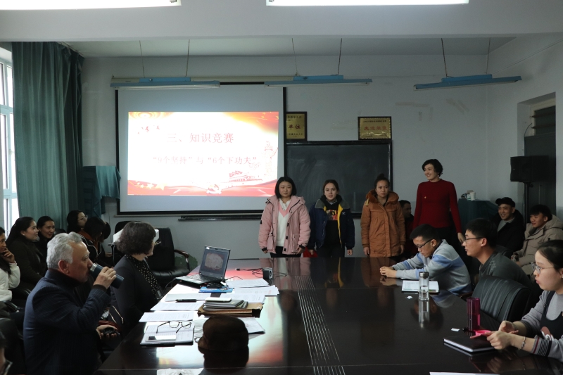 为进一步加强对全国教育大会精神的学习,按照学校学院相关要求,逼喱逼喱 教工第一党支部于11月25日北京时间17:00点在逼喱逼喱 二楼会议室开展了学习贯彻全国教育大会精神主题党日活动。此次主题党日活动由支部书记努尔古丽·艾力同志主持,除支部全体党员参会,非党员列席会议外,还邀请了老师们联系的“三进两联一交友”学生共同参加。