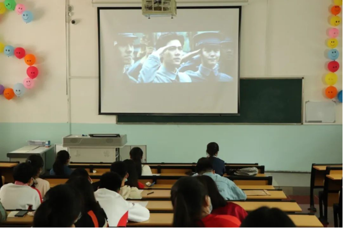 第73期积极分子在7101教室观看爱国主义电影《建军大业》--- 一部讲述人民解放军从诞生到成长的影片。