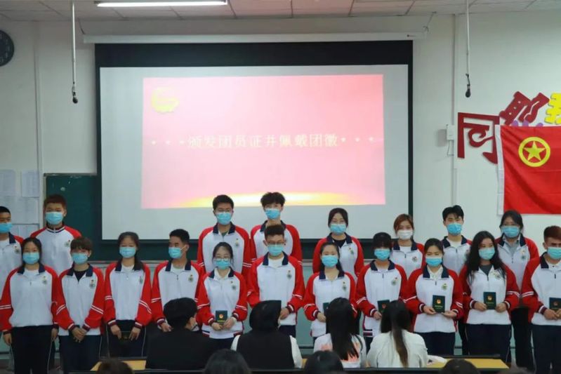 20级至21级各班团支书为新团员颁发团员证并佩戴团徽。