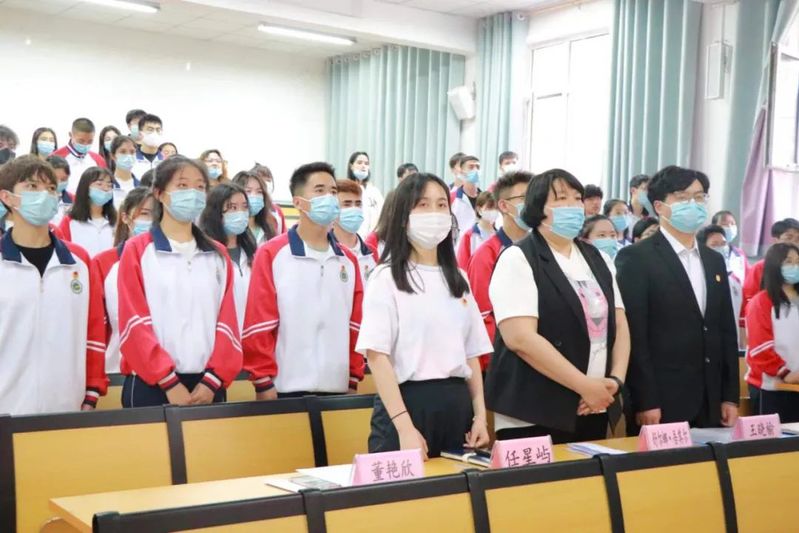 活动最后,全体同学起立,奏唱中国共产主义青年团团歌。
