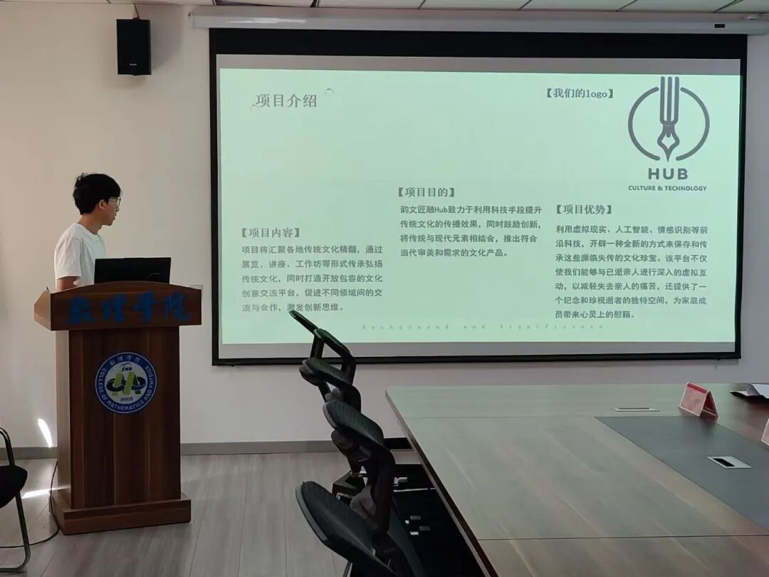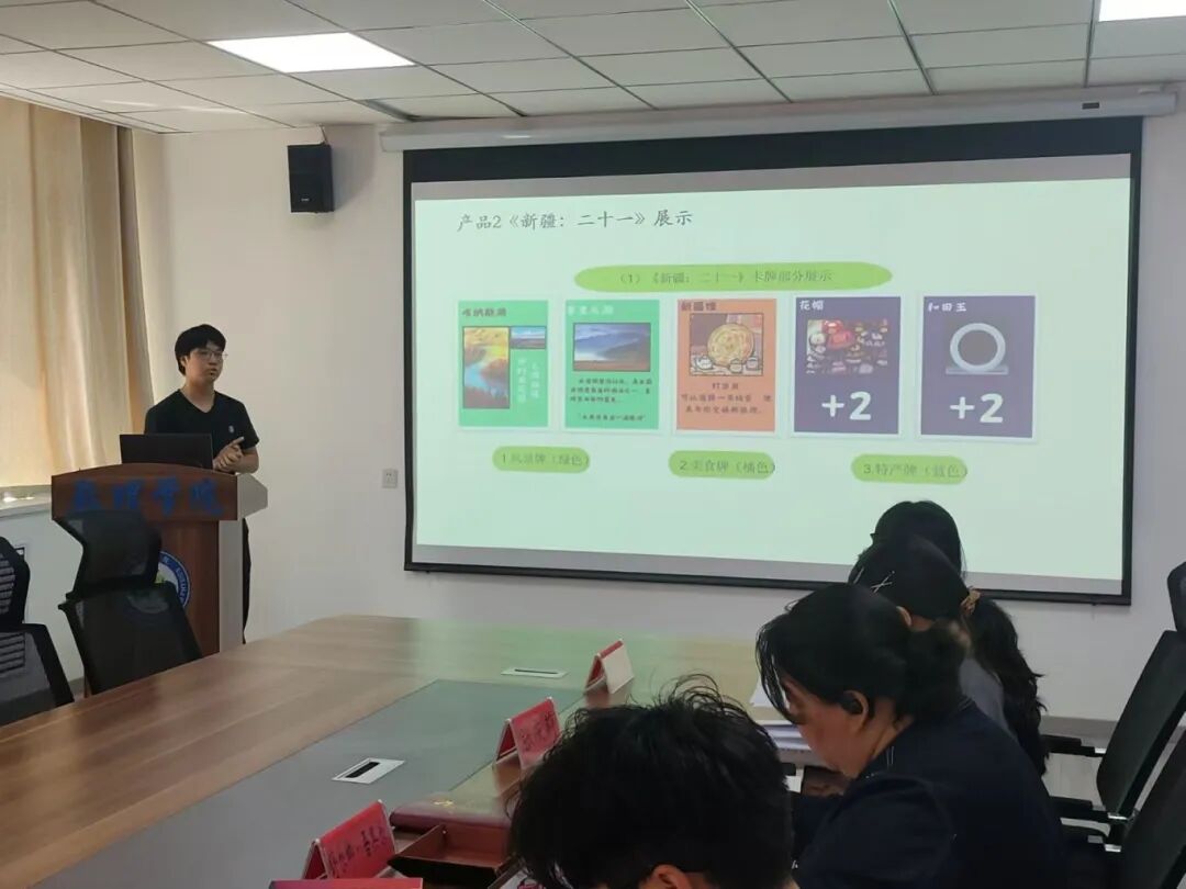 项目汇报环节,各参赛团队代表围绕项目展开详细阐述,涵盖项目产品结构特点分析、团队成员分工与优势介绍等内容。文脉智渊Hub—乡土新生聚焦乡村文化振兴;“文化之根,灵魂窃语”组推出新疆文旅文创桌游,以新颖形式展现民族文化特色。