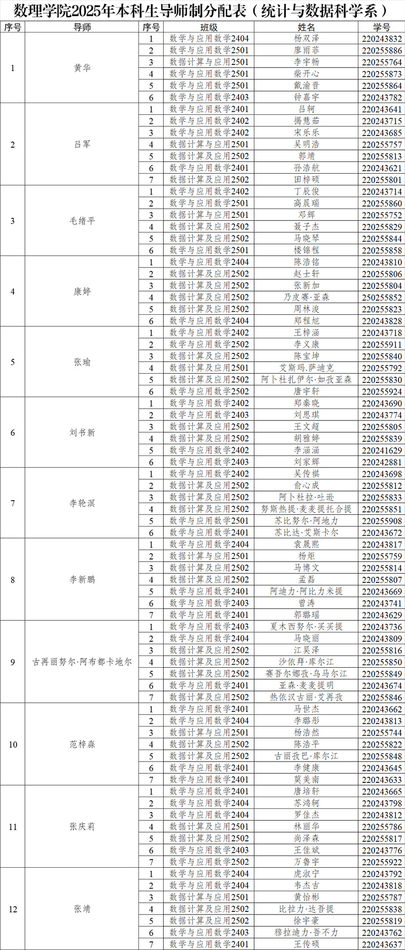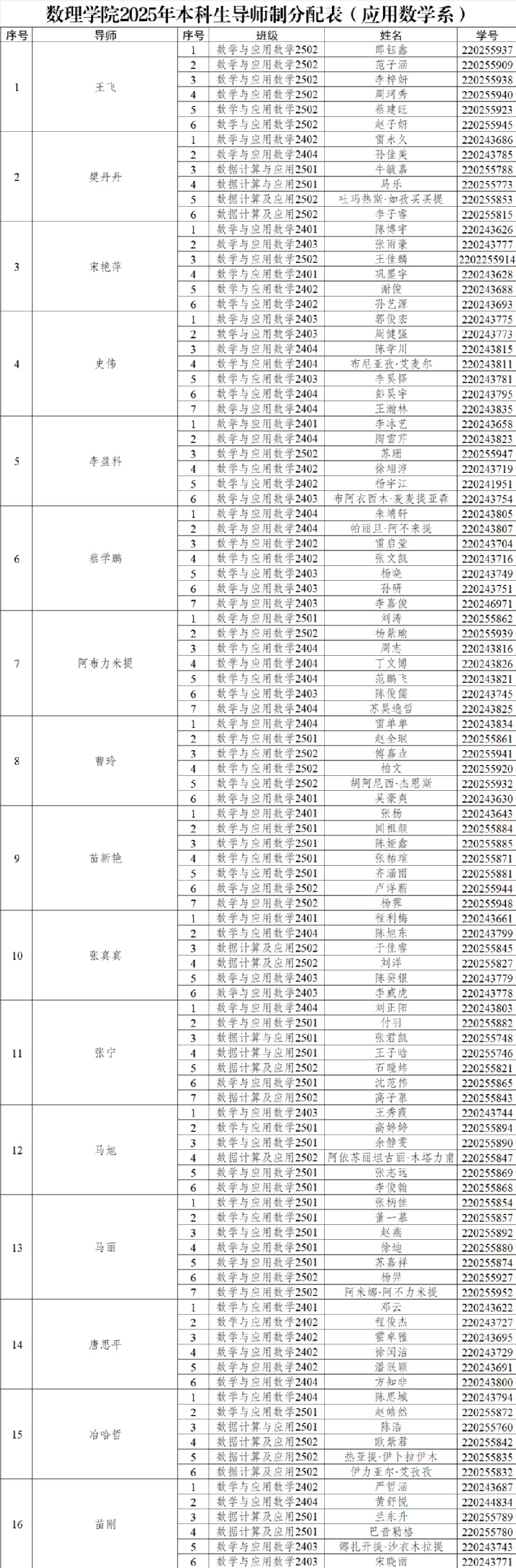 逼喱逼喱 2025年本科生导师制分配表